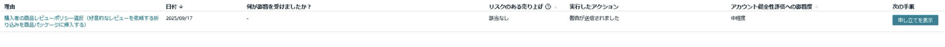 軽微なカスタマーレビュー違反は、こちらに表示されます。