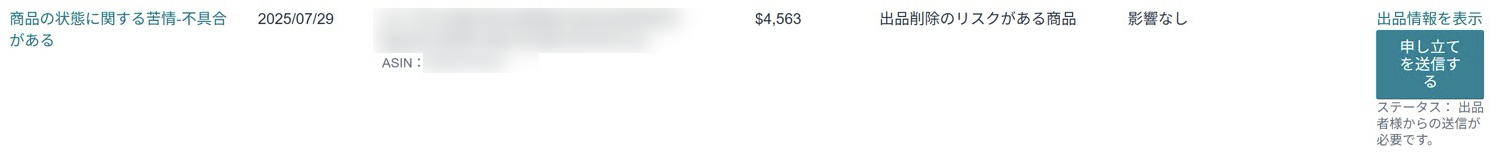これはメーカーに偽造品を指摘された場合や、カスタマーレビュー違反、出品者利用規約および出品者行動規範などが該当します。