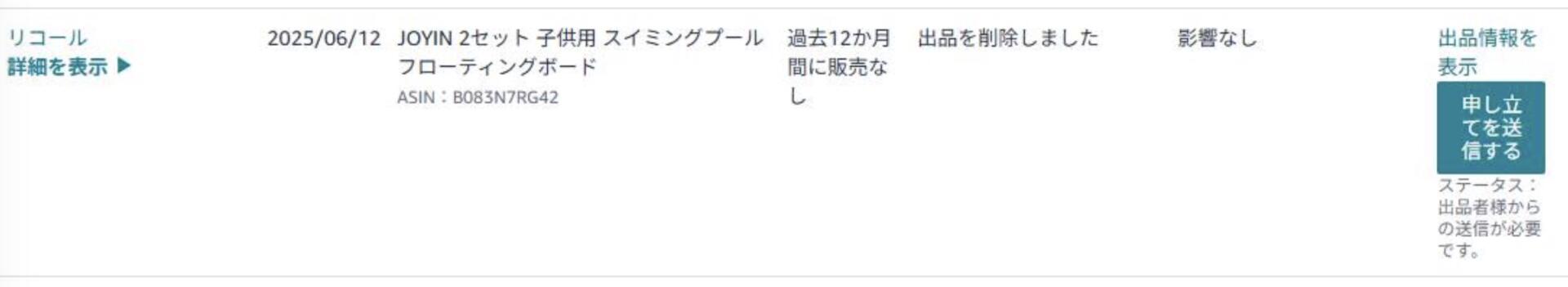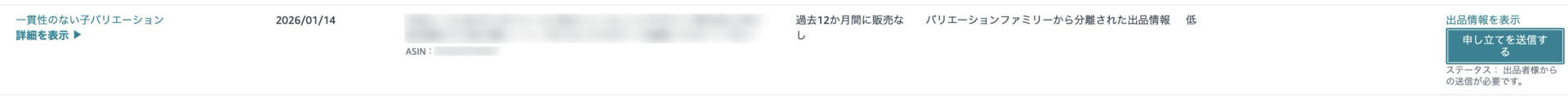 つまり新たな「申立てフォーム」は出現しないので、該当のASINを1つずつ“警告解除”申請していき、再度100点以上に戻す必要があります。