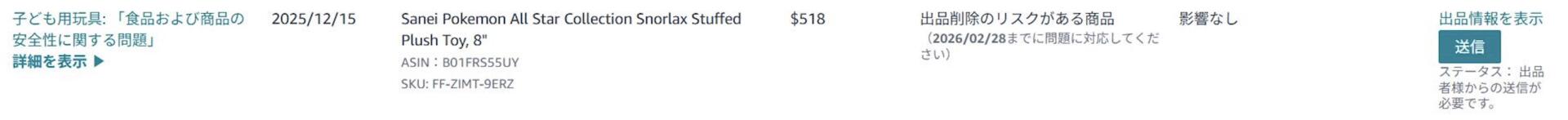 ご利用の出品用アカウントに関連した未対応のポリシー違反があり、それらの違反によってアカウント健全性評価がアカウントの利用停止のしきい値を下回ったため、このような措置を講じました。