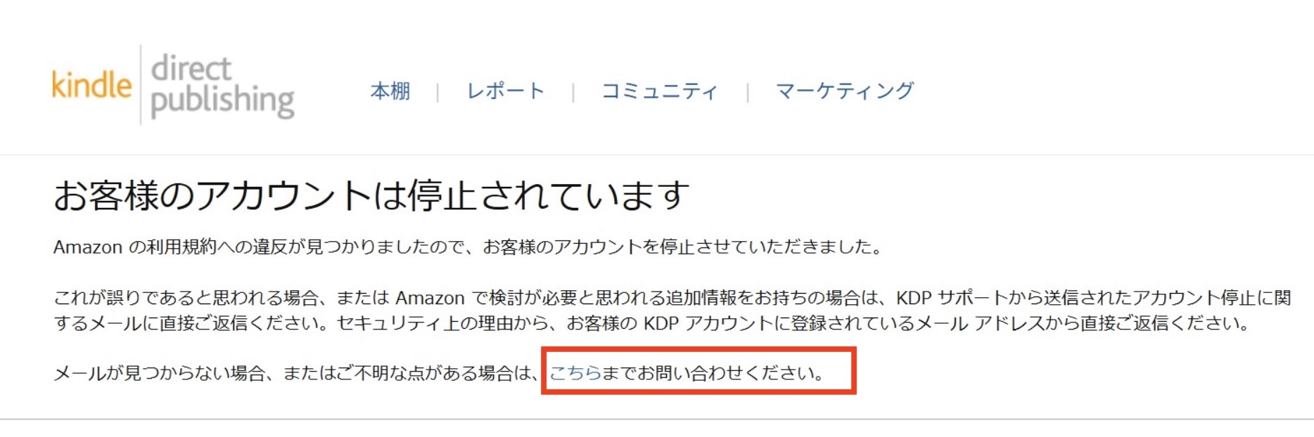 KDPアカウントの登録情報が正確ではないとの理由で、アカウント停止になる場合があります。