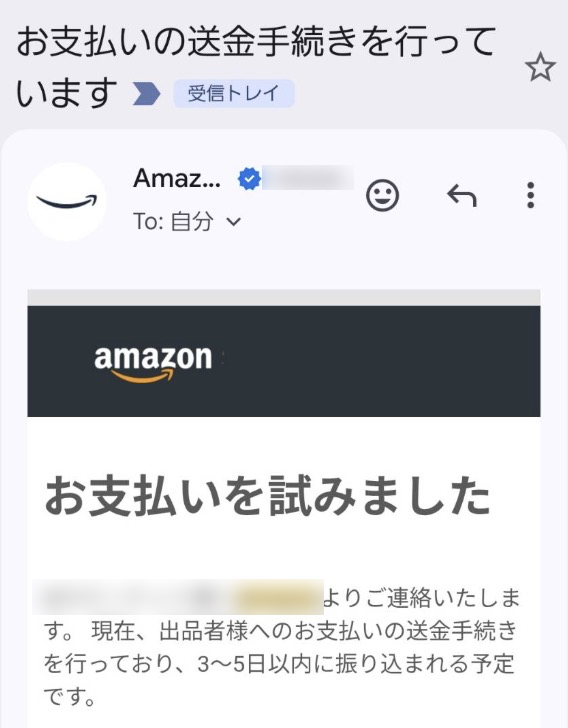 この段階では「売上金を留保しました」というだけの通知メールに近いため、アクションはできません。